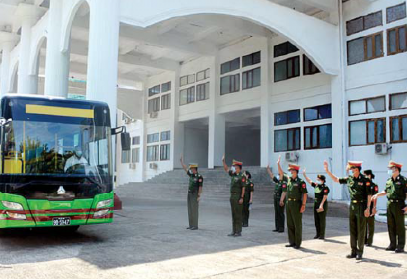 COVID-19 ရောဂါ ကာကွယ်၊ ထိန်းချုပ်ကုသရေးလုပ်ငန်းများ အရှိန်အ အဟုန်မြှင့်ဆောင်ရွက်လျက်ရှိပြီး ရန်ကုန်တိုင်းစစ်ဌာနချုပ်နယ်မြေအတွင်းရှိ ကုသရေးဆေးရုံများ၌ ကျန်းမာရေးဝန်ထမ်းများ မလုံလောက်မှုကြောင့် ထပ်မံ ဖွင့်လှစ်ထားရှိသည့် ရန်ကုန်တိုင်းဒေသကြီး၊ လှည်းကူးမြို့နယ် COVID-19 ရောဂါကုသရေးဌာန(ဖောင်ကြီး)တွင် တပ်မတော်မှ ပါဝင်ကူညီဆောင်ရွက်ရန် အတွက် ဆေးဝန်ထမ်းတပ်ဖွဲ့ဝင် ပါရဂူများ၊ ဆေးမှူးများ၊ သူနာပြုများ ပါဝင်သောအဖွဲ့က သွားရောက်တာဝန်ထမ်းဆောင်လျက်ရှိသည်။