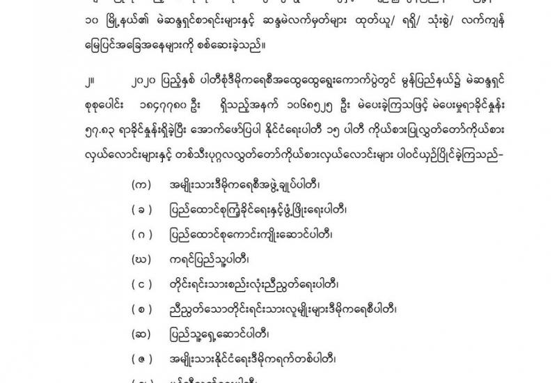 နိုင်ငံတော်၏ မေခရိုစီးပွားရေး အခြေအနေဖြစ်ပေါ်မှု ကိန်းဂဏန်း၊ အချက်အလက်များကို စောင့်ကြည့်လေ့လာသုံးသပ်၍ ကာလတိုနှင့် ကာလလတ်အတွက် ဆောင်ရွက်မည့်အစီအမံများ အကြံပြုတင်ပြနိုင်ရေးနှင့် စပ်လျဉ်းသည့် ညှိနှိုင်းအစည်းဝေး တစ်ရပ်ကို ယနေ့နံနက် ၁၀ နာရီတွင် နေပြည်တော်ရှိ စီမံကိန်းနှင့်ဘဏ္ဍာရေး ဝန်ကြီးဌာန၌ ကျင်းပသည်။