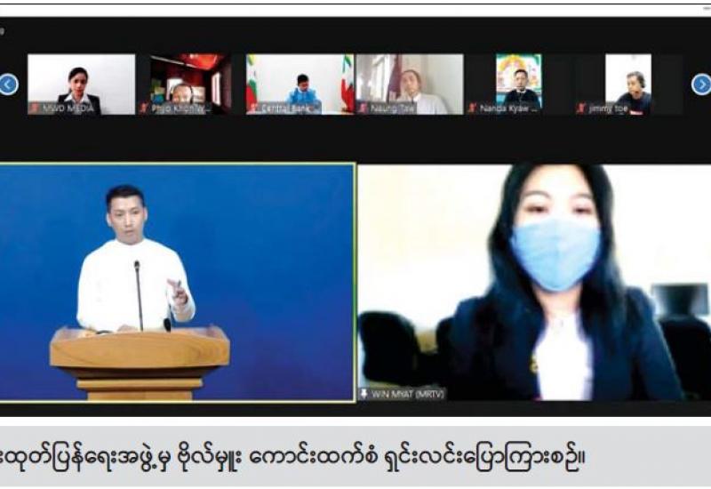 နိုင်ငံတော်စီမံ အုပ်ချုပ်ရေးကောင်စီ၊ သတင်းထုတ်ပြန်ရေးအဖွဲ့၏ အပတ်စဉ် သတင်းစာ ရှင်းလင်းပွဲကို ယနေ့ မွန်းလွဲပိုင်းတွင် Video Conferencing ဖြင့် ပြုလုပ်ပြီး သတင်းမီဒီယာ များ၏ သိရှိလိုသည့် မေးမြန်းချက်များကို ပြန်လည်ဖြေကြားခဲ့သည်။