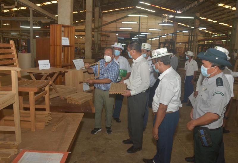 သယံဇာတနှင့် သဘာဝပတ်ဝန်းကျင်ထိန်းသိမ်းရေးဝန်ကြီးဌာန၊ ပြည်ထောင်စု ဝန်ကြီး ဦးခင်မောင်ရီသည် တာဝန်ရှိ သူများနှင့်အတူ ယနေ့တွင် ရန်ကုန်တိုင်းဒေသကြီး၊ တောင်ဒဂုံမြို့နယ်ရှိ မြန်မာ့သစ်လုပ်ငန်း၊ သစ်အခြေခံ စက်မှု လုပ်ငန်းဌာန၊ အမှတ်(၁၀) ပရိဘောဂစက်ရုံအား ကြည့်ရှုစစ်ဆေးရာ သစ်အခြေခံစက်မှုလုပ်ငန်းဌာန စက်ရုံအထွေထွေ မန်နေဂျာက စက်ရုံနောက်ခံသမိုင်းများနှင့် စက်ရုံ၌ Prowess Myanmar Co., Ltd နှင့်ပူးပေါင်း၍ ပရိဘောဂများ ထုတ်လုပ်တင်ပို့မည့်အစီအစဉ်များကို ရှင်းလင်းတင်ပြသည်။