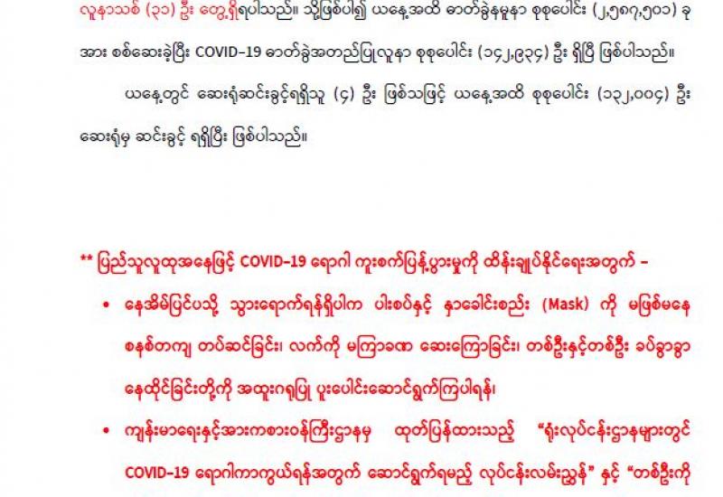 မြန်မာနိုင်ငံသား တိုင်းရင်းသားများနှင့် ဥပဒေအရနိုင်ငံသားများအား အိမ်ထောင်စုလူဦးရေ စာရင်းနှင့် ကိုင်ဆောင်သင့်သည့် ကတ်ပြားတစ်မျိုးမျိုး ထုတ်ပေးရေးအတွက် ဆောင်ရွက်မည့် ပန်းခင်းစီမံချက်နှင့် ပတ်သက်သည့် လုပ်ငန်းညှိနှိုင်းအစည်းအဝေးကို ယနေ့ နံနက် (၉) နာရီ တွင် နေပြည်တော် ရှိ အလုပ်သမား၊ လူဝင်မှုကြီးကြပ်ရေးနှင့် ပြည်သူ့အင်အားဝန်ကြီးဌာန၊ အစည်း အဝေးခန်းမ၌ Zoom Meeting ဖြင့် ကျင်းပသည်။