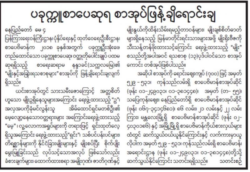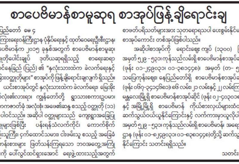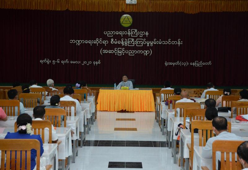 ပညာရေးဝန်ကြီးဌာန အဆင့်မြင့်ပညာကဏ္ဍ (ဝိဇ္ဇာ သိပ္ပံတက္ကသိုလ်များ၊ ပညာရေးဒီဂရီ ကောလိပ်များ) ဘဏ္ဍာရေးဆိုင်ရာစီမံ ခန့်ခွဲကြီးကြပ်မှုမွမ်းမံသင်တန်းကို ယနေ့နံနက် ၉ နာရီတွင် နေပြည်တော်ရှိ ပညာရေးဝန်ကြီးဌာန ရုံးအမှတ်(၁၃) အစည်းအဝေး ခန်းမ၌ကျင်းပသည်။