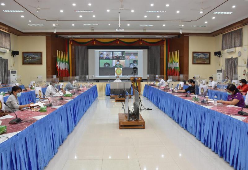 ကိုဗစ်-၁၉ ရောဂါကာကွယ်ထိန်းချုပ်ရေး လုပ်ငန်းညှိနှိုင်းအစည်းအဝေးကို ယနေ့နံနက်ပိုင်းတွင် ကျန်းမာရေးနှင့်အားကစားဝန်ကြီးဌာန ရုံးအမှတ် (၄) အစည်းအဝေးခန်းမ၌ ဗီဒီယိုကွန်ဖရင့် စနစ်ဖြင့် ကျင်းပသည်။