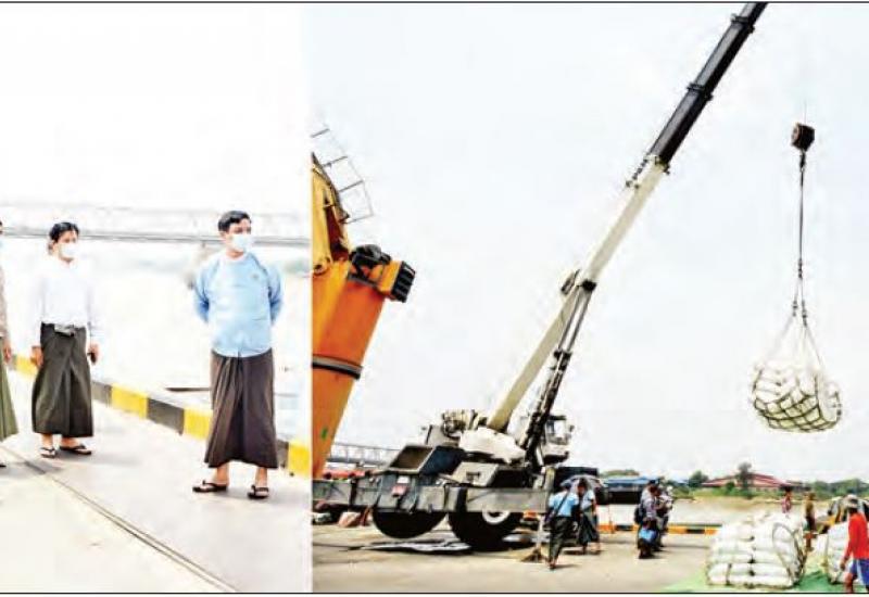 ကုန်သွယ်မှုနှင့် ကုန်စည်စီးဆင်းမှုများ မှန်ကန်မြန်ဆန်စေရေးလုပ်ငန်း ကော်မတီဥက္ကဋ္ဌ၊ စီးပွားရေးနှင့် ကူးသန်းရောင်းဝယ်ရေးဝန်ကြီးဌာန ဒုတိယဝန်ကြီး ဦးညွန့်အောင်သည် ရန်ကုန်တိုင်းဒေသကြီး စီမံအုပ်ချုပ်ရေးကောင်စီဝင် ဗိုလ်မှူးကြီးဝင်းတင့်၊ စီးပွားရေးနှင့် ကူးသန်းရောင်းဝယ် ရေးဝန်ကြီးဌာန အမြဲတမ်းအတွင်းဝန်၊ လုပ်ငန်းကော်မတီအတွင်းရေးမှူး၊ အကောက်ခွန်ဦးစီးဌာန၊ မြန်မာ့ဆိပ်ကမ်း အာဏာပိုင်၊ တာဝန်ရှိသူများနှင့်အတူ ယနေ့နံနက်ပိုင်းတွင် ရွှေပြည်သာစက်မှုဇုန် (၃)ရှိ ရွှေမ် ဆိပ်ကမ်းတံတားသို့ သွားရောက်ကြည့်ရှုစစ်ဆေးရာ ဆိပ်ကမ်း တာဝန်ကျများက သက်ဆိုင်ရာ ဆိပ်ကမ်းအစည်းအဝေးခန်းမ၌ ဆိပ်ကမ်းပိုင်းဆိုင်ရာ အချက်အလက်များ၊ ဆန်တင်ပို့မှုအခြေအနေ များကို ရှင်းလင်းတင်ပြသည်။