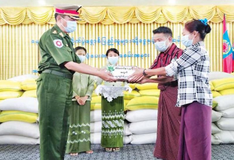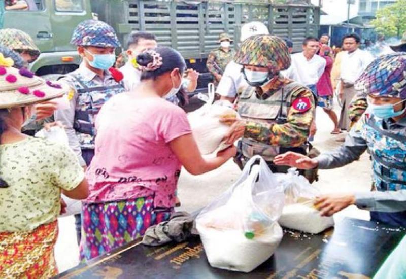 COVID-19 ရောဂါ ကာကွယ်၊ ထိန်းချုပ်ကုသရေး လုပ်ငန်းများဆောင်ရွက်နေစဉ် ကာလအတွင်း သွားလာမှုကန့်သတ်ချက်များကြောင့်ဒေသခံပြည်သူ များ စားရေးအဆင်ပြေစေရန်အတွက် နယ်မြေခံ တပ်မတော်သားများက ဆန်၊ ဆီနှင့် စားသောက် ဖွယ်ရာများကို အိမ်အရောက်လိုက်လံပေးဝေလှူဒါန်း လျက်ရှိသည်။