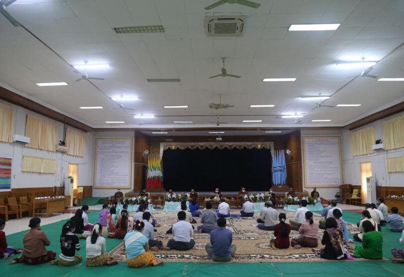 ၁၃၈၃ ခုနှစ်၊ မြန်မာ့နှစ်သစ်ကူးအခါသမယတွင် နိုင်ငံသူ နိုင်ငံသားများ ဥပဒ်ဘေးဒဏ် ဘေးရန် အန္တရာယ်ကင်းဝေးစေရန်အတွက် နိုင်ငံတော်စီမံ အုပ်ချုပ် ရေး ကောင်စီ မြန်မာ့ နှစ်သစ်ကူး အန္တရာယ်ကင်းပရိတ်တရားတော်နာ အခမ်း အနားကို ယနေ့ နံနက်ပိုင်းတွင် နေပြည်တော်ရှိ နိုင်ငံတော်စီမံအုပ်ချုပ်ရေး ကောင်စီ ဥက္ကဋ္ဌရုံး ငုရွှေဝါခန်းမ၌ ကျင်းပသည်။