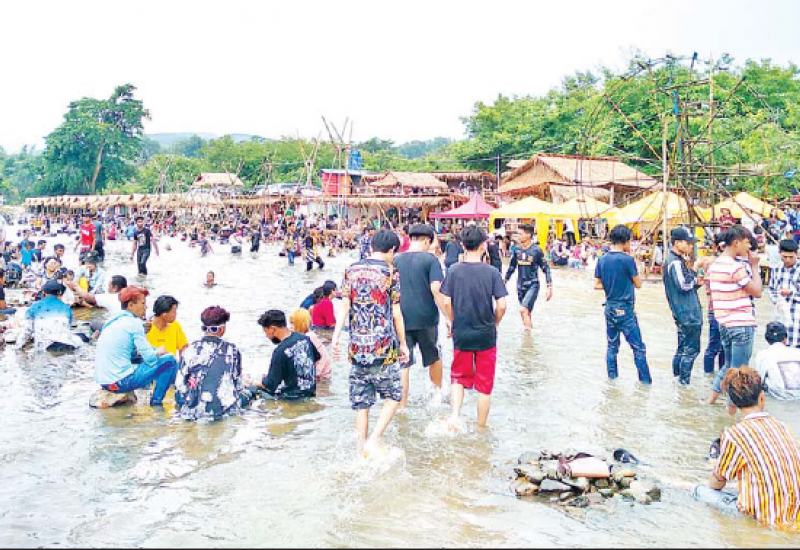 ရှမ်းပြည်နယ် (အရှေ့ပိုင်း) တာချီလိတ်မြို့နယ်ရှိ ရေချောင်း များတွင် ယနေ့ (ဧပြီ ၁၆ ရက်) သင်္ကြန်အတက်နေ့၌ စိတ်အေး ချမ်းသာစွာ အပန်းဖြေအနားယူ သူများ၊ ရေကစားသူများဖြင့် စည်ကား လျက်ရှိသည်ကို တွေ့ရ သည်။