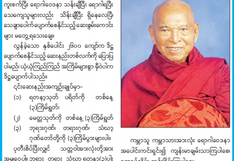 (၁၃) ကြိမ်မြောက် နှစ်သစ်မင်္ဂလာ အန္တရာယ်ကင်း ပရိတ်တရားတော်နာယူပွဲ မင်္ဂလာ အခမ်းအနားကို ယနေ့နံနက်ပိုင်းတွင် ပြည်ထောင်စုနယ်မြေ၊ နေပြည်တော်၊ ဥပ္ပါတသန္တိ စေတီတော်မြတ်ကြီး၌ ကျင်းပသည်။