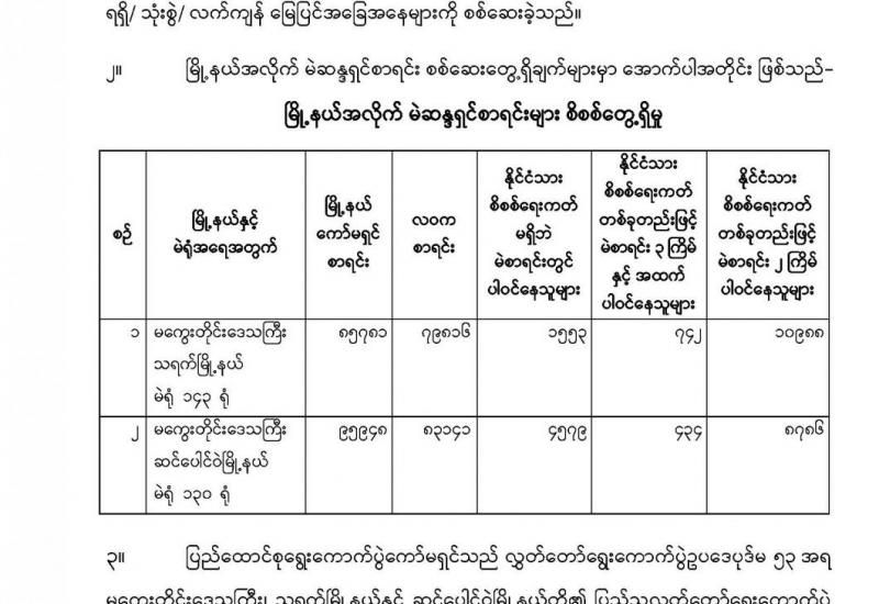 နေပြည်တော်ကောင်စီနယ်မြေ၊ တပ်ကုန်းမြို့၊ စစ်ကိုင်းတိုင်းဒေသကြီး၊ ဖောင်းပြင်မြို့နယ်နှင့် ချင်းပြည်နယ်၊ ထန်တလန်မြို့၊ မန္တလေးတိုင်းဒေသကြီး၊ ရမည်းသင်းမြို့နယ်နှင့် စဉ့်ကိုင်မြို့နယ် များအတွင်းရှိ ကျေးရွာအချို့တို့၌ ဆူပူ အကြမ်းဖက်မှုတွင် အသုံးပြုသည့် လက်လုပ်သေနတ်များ ကိုင်ဆောင်နေကြောင်း သတင်းအရ အေပြီ ၁၅ ရက်နှင့် ယနေ့တို့တွင် တိုင်းစစ်ဌာနချုပ်ရှိ တပ်နယ်အသီးသီးမှ လုံခြုံရေးတပ်ဖွဲ့ဝင်များက ကျေးရွာအုပ်ချုပ်ရေးမှူးများနှင့်အတူ သွားရောက်၍ ဒေသခံ ပြည်သူများကို တရားမဝင် လက်နက်ကိုင်ဆောင်ခြင်းသည် တရားဥပဒေဖြင့် ထိရောက်စွာ အရေးယူခံရနိုင်ကြောင်း နားလည်သဘော ပေါက်အောင် ရှင်းလင်း ပြောကြား သည်။
