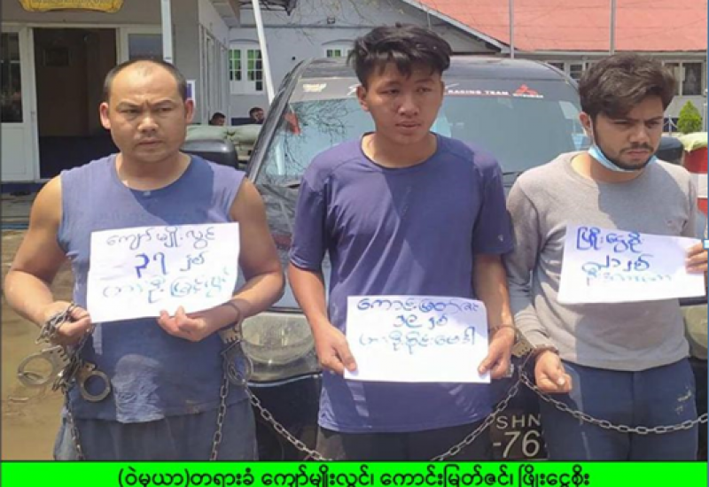 လုံခြုံရေးတပ်ဖွဲ့ဝင်များပါဝင် သော ပူးပေါင်းအဖွဲ့သည် ယနေ့နံနက် ၁၀ နာရီခွဲတွင် တောင်ကြီးမြို့၊ မြို့ပေါ်ရပ်ကွက်များအတွင်း၌ လှည့်ကင်းဆောင်ရွက်စဉ် ကန်ရှေ့ရပ်ကွက် အရှေ့မြို့ပတ်လမ်း “ရွှေကမ္ဘာ”ကားဂိတ်ရှေ့၌ 4F/7618 Mistubishi ယာဉ်သည် အမြင့် ၉ ပေခွဲခန့်ရှိ ကော်ပိုက်အဖြူရောင်ထိပ်တွင် လက်သုံးချောင်းပုံပါ အနီရောင်အလံကို ကားပေါ်တွင် ထောင်၍ မော်တော်ယာဉ် ၆ စီး၊ ဆိုင်ကယ် ၅ စီးတို့ဖြင့် လှည့်လည် ဆန္ဒပြနေသည်ကို တွေ့ရှိသဖြင့် ဖမ်းဆီးခဲ့ရာ 4F/7618 Mistubishi ယာဉ်နှင့်အတူ ယာဉ်မောင်း ကန်ရှေ့ရပ်ကွက်နေ ဖြိုးဝေစိုး(ခ)Sachin Phatia(၂၁)နှစ် (ဘ)ဦးSK ပါ ၃ ဦးကို ဖမ်းဆီးရမိခဲ့သည်။