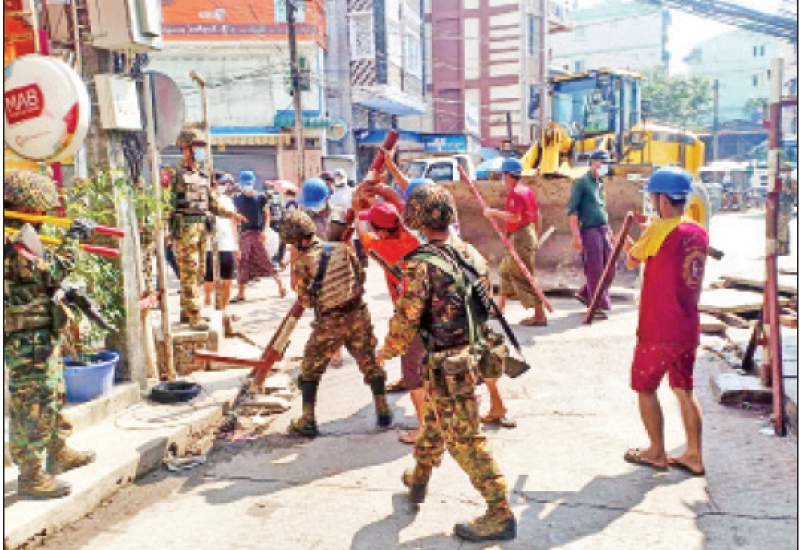 ရန်ကုန်မြို့အတွင်း တည်ငြိမ်အေးချမ်းရေးကို နှောင့်ယှက် ဖျက်ဆီးလိုသူများက အများ ပြည်သူသွား လမ်းများပေါ်တွင် လမ်းပိတ် အတားအဆီးများ ပြုလုပ်ထားခြင်းအား ပြည်သူများ စိတ်အေးချမ်းသာစွာ သွားလာနိုင် ရေးအတွက် မြို့နယ်စီမံအုပ်ချုပ် ရေးအဖွဲ့များ၊ လုံခြုံရေးတပ်ဖွဲ့ဝင် များနှင့် စည်ပင်သာယာ ဝန်ထမ်းများက ယန္တရားများ၊ မြေသယ် ယာဉ်များ အသုံးပြုကာ ဖယ်ရှား ရှင်းလင်းခြင်းနှင့် အစိုးရ ဆန့်ကျင် စာသားများကိုဆေးဖြင့် ရေးဆွဲ ထားခြင်း၊ နံရံများ၊ တံတိုင်းများ တွင် ကပ်ထားခြင်းအား စည်ပင် သာယာဝန်ထမ်းများက ဖျက်သိမ်း ရှင်းလင်းခဲ့ကြောင်း သိရသည်။
