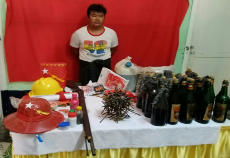 ဆူပူအကြမ်းဖက်သူများအသုံးပြုလျက်ရှိသည့် လက်နက်များနှင့် ပစ္စည်းများ သိုဝှက်ထားမှုနှင့် ကိုင်ဆောင်မှုများကို လုံခြုံရေးတပ်ဖွဲ့ဝင်များက စစ်ဆေးရှာဖွေ သတင်းဖော်ထုတ် ဖမ်းဆီးထိန်းသိမ်းခြင်းများ ဆောင်ရွက်လျက်ရှိရာ အေပြီ ၁၃ ရက် တွင် ညောင်ရွှေမြို့နယ်၊ ညောင်ဖြူကျေးရွာရှိ ဇော်ဝင်းလေး(ခ)ဝေဠု(ဘ)ဦးဝင်းမောင် ၏ နေအိမ်၌ တူမီးသေနတ် ၁ လက်၊ မီးပုလင်း ၂၆ လုံးအခြားဆက်စပ်ပစ္စည်းများအား လည်းကောင်း၊ ဓနုဖြူမြို့၊ မြို့ဝင်စစ်ဆေးရေးဂိတ်၌ လုံခြုံရေးဆောင်ရွက်နေသော ပူးပေါင်း အဖွဲ့က ရန်ကုန်မြို့မှ ကြံခင်းမြို့သို့ ဇော်မျိုးထက်(ဘ)ဦးလှတင် မောင်းနှင်၍ စိုးမင်းဟန် (ဘ)ဦးချစ်လှ လိုက်ပါလာသည့် ရွှေတော်ဝင်မှန်လုံခရီးသည်တင် မော်တော်ယာဉ်အား ရပ်တန့်စစ်ဆေးရာ ယာဉ်ပေါ်ရှိ စက္ကူပုံအတွင်းမှ ဆူပူအကြမ်းဖက်ရာတွင်အသုံးပြုသည့် ပစ္စည်းများ၊ လက်လုပ်ဗုံး ၁ လုံးနှင် ဆက်စပ်ပစ္စည်းများအားလည်းကောင်း ဖမ်းဆီး ရမိခဲ့သည်။