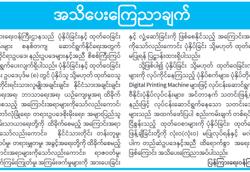 မြန်မာနိုင်ငံသတင်းမီဒီယာကောင်စီဝင် ရွေးချယ်တင်မြှောက်ပွဲ ကျင်းပမည်ဖြစ်ကြောင်း အသိပေးကြေညာ
