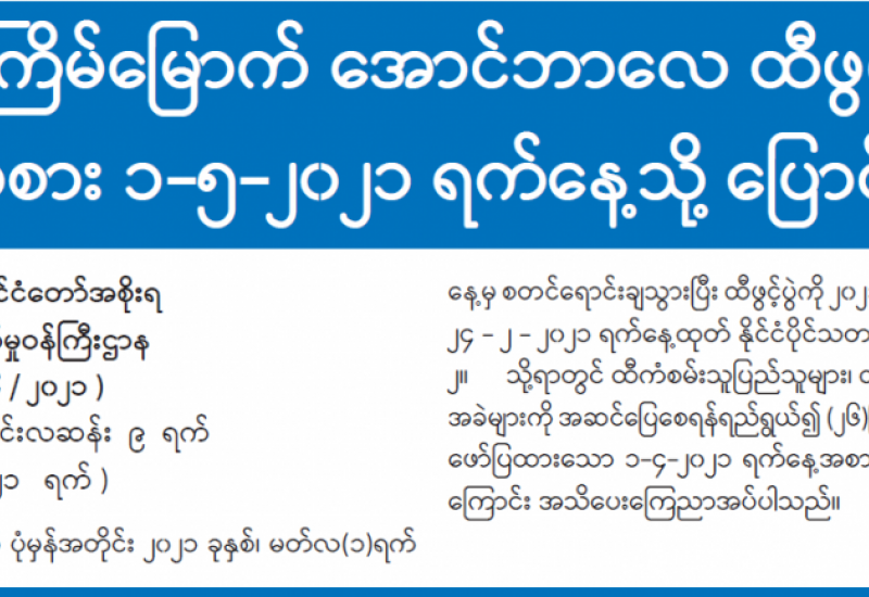 (၂၀၂၁ ခုနှစ်၊ မတ်လ (၂၂)ရက်နေ့ ည(၇:၀၀)နာရီအချိန် ထုတ်ပြန်ချက်)