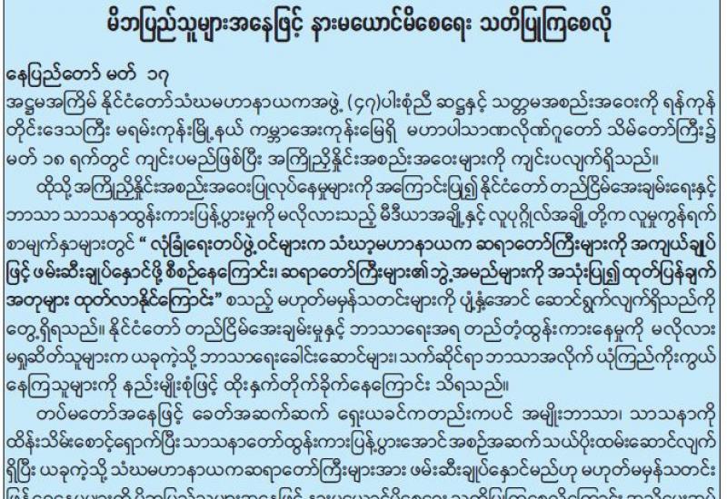 (၂၀၂၁ ခုနှစ်၊ မတ်လ (၁၈)ရက်နေ့ နံနက်(၇:၀၀)နာရီအချိန် ထုတ်ပြန်ချက်)