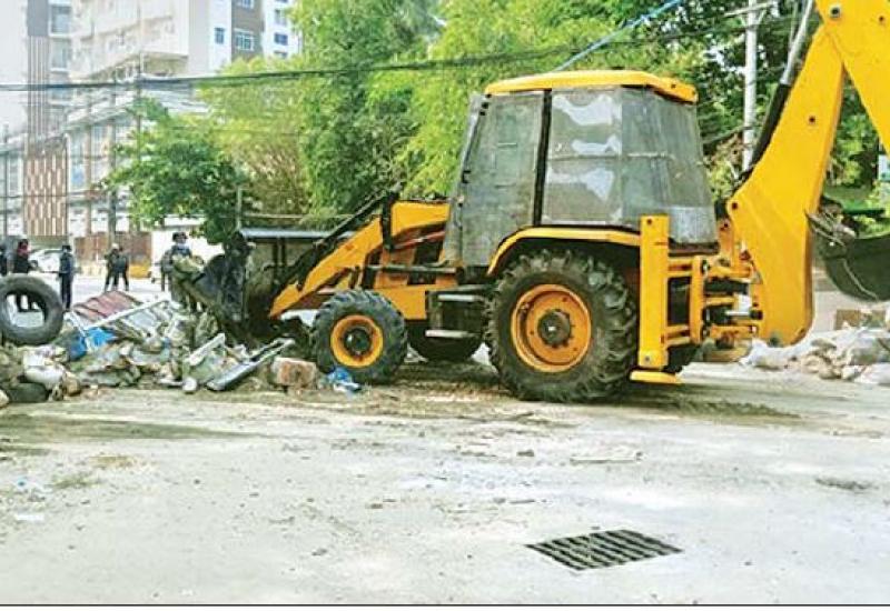 ရန်ကုန်တိုင်းဒေသကြီး လှိုင်မြို့နယ် အင်းစိန်လမ်းမ ပေါ်၌ နှောင့်ယှက်လိုသူများက ပိတ်ဆို့တားဆီးထားသော အတားအဆီးများကို ယနေ့ မွန်းလွဲ ၂ နာရီတွင် တပ်မတော်သားများ၊ မြန်မာနိုင်ငံရဲတပ်ဖွဲ့ဝင်များ၊ စည်ပင်သာယာဝန်ထမ်းများပါဝင်သော ပူးပေါင်း အင်အားဖြင့် ရှင်းလင်းနေမှုအား ရန်ကုန်မြို့တော် စည်ပင်သာယာရေးကော်မတီ၊ ကော်မတီဝင် ဒေါက်တာ ဇော်ဝင်းနှင့် ဦးအောင်နိုင်တို့ သွားရောက် ကြည့်ရှုသည်။