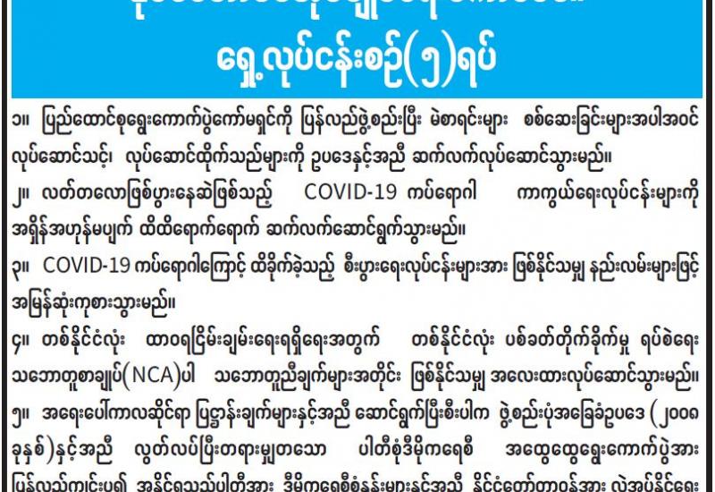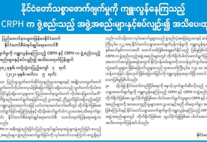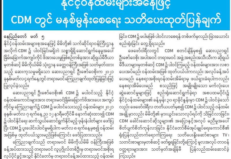 (၂၀၂၁ ခုနှစ်၊ မတ်လ (၆)ရက်နေ့ ည(၇:၀၀)နာရီအချိန် ထုတ်ပြန်ချက်)