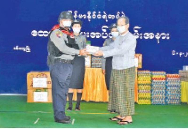 ရခိုင်ပြည်နယ် စီမံအုပ်ချုပ်ရေးကောင်စီဥက္ကဋ္ဌ ဒေါက်တာအောင်ကျော်မင်းနှင့် အနောက်ပိုင်း တိုင်းစစ်ဌာနချုပ်တိုင်းမှူး ဗိုလ်ချုပ်ထင်လတ်ဦး တို့မှ ရခိုင်ဒေသတွင် ရှေ့တန်းတာဝန်ထမ်းဆောင်ခဲ့သော အမှတ်(၇)လုံခြုံရေးရဲတပ်ဖွဲ့ခွဲမှ တပ်ဖွဲ့ဝင်များအား ရိက္ခာပစ္စည်းများထောက်ပံ့ ပေးအပ်ပွဲကို ယနေ့တွင် စစ်တွေမြို့အမှတ်(၃၆) ရဲတပ်ရင်း အစည်းအဝေးခန်းမ၌ ကျင်းပသည်။