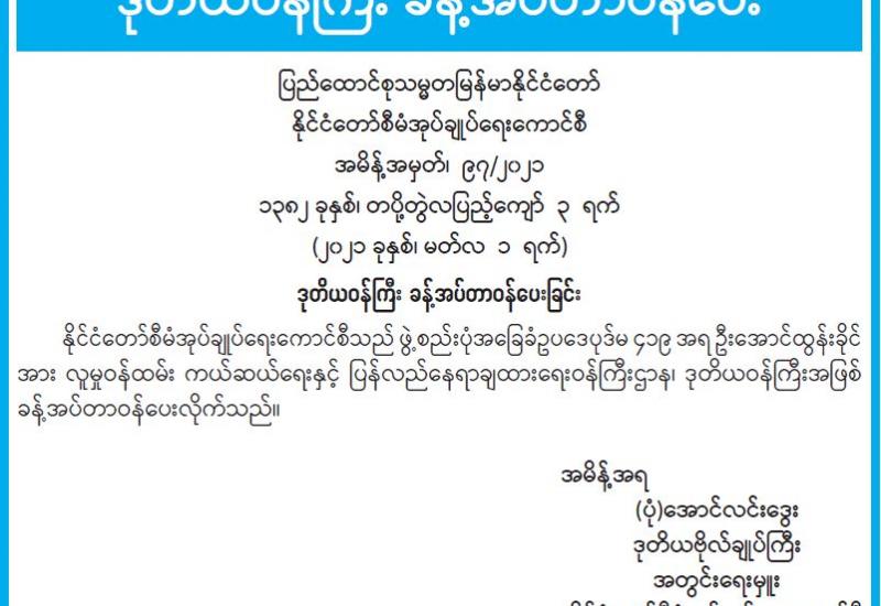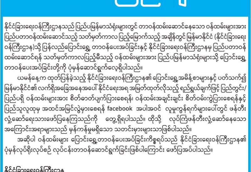 (၂၀၂၁ ခုနှစ်၊ မတ်လ (၁)ရက်နေ့ ညနေ(၄:၀၀)နာရီအချိန် ထုတ်ပြန်ချက်)