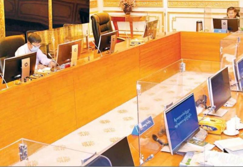 မြန်မာစီးပွားရေးသံမှူးများ၏ နှစ်နိုင်ငံကုန်သွယ်မှုမြှင့်တင်ရေး ဆောင်ရွက်နိုင်မှုနှင့် အမယ်သစ်ပို့ကုန်များ တိုးချဲ့တင်ပို့နိုင်ရေးဆွေးနွေးပွဲကို ယနေ့နံနက် ၁၀ နာရီ တွင် စီးပွားရေးနှင့် ကူးသန်းရောင်းဝယ်ရေးဝန်ကြီးဌာန၊ အစည်းအဝေးခန်းမ (၁)၌ Virtual စနစ် ဖြင့်ကျင်းပသည်။