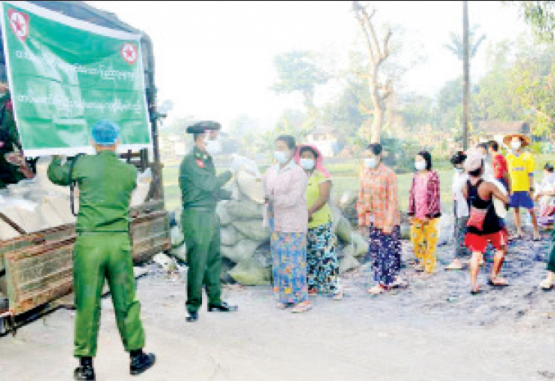 နိုင်ငံတော်နှင့် တပ်မတော်အတွက် အသက်ပေးလှူခဲ့ရသည့်အရာရှိ၊ စစ်သည်များ၏ မိသားစု ဝင်များ၊ စစ်မှုထမ်းဟောင်း အဖွဲ့ဝင်များနှင့် မိသားစုဝင်များ၊ ရဲမှုထမ်းဟောင်းအဖွဲ့ဝင်များ၊ ပြည်သူ့စစ်(ဌာနေ) တပ်ဖွဲ့ဝင်များနှင့်မီးသတ်တပ်ဖွဲ့ဝင် များအတွက် ကိုဗစ်-၁၉ ရောဂါ ကာကွယ်၊ ထိန်းချုပ်၊ ကုသရေး လုပ်ငန်းများ ဆောင်ရွက်နေသည့်ကာလအတွင်း အသွားအလာ ကန့်သတ်ချက်များကြောင့် စားရေး အခက်အခဲ မရှိစေရန် ဆန်၊ ဆီ၊ ဆား၊ ပဲ အမယ်လေးမျိုးနှင့် ကိုဗစ်- ၁၉ ရောဂါကာကွယ်ရေး အထောက်အကူပြုပစ္စည်း များကို သက်ဆိုင်ရာ တိုင်းစစ်ဌာန ချုပ်များ၊ စစ်မှုထမ်းဟောင်းရုံး အိမ်ရာများ၊ တပ်နယ်ခန်းမများနှင့် ရဲတပ်ဖွဲ့မှူးရုံး တို့၌ ပေးအပ်လျက်ရှိသည်။