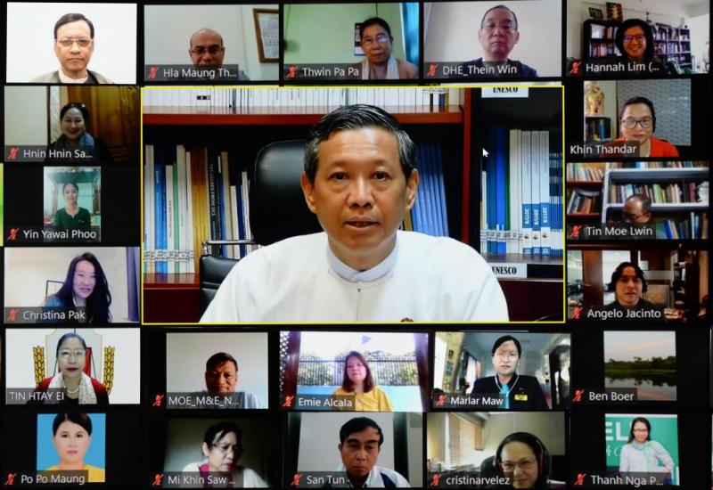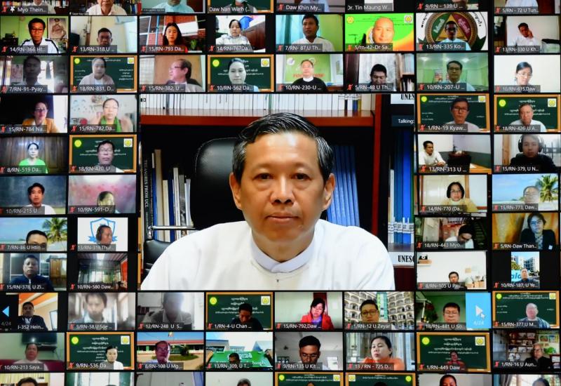 မြန်မာနိုင်ငံတက္ကသိုလ်များအတွက် ပတ်ဝန်းကျင်ထိန်းသိမ်းရေးဥပဒေ သင်ရိုးညွှန်းတမ်းများ ရေးဆွဲရေးလုပ်ငန်း စတင်ခြင်း အခမ်းအနားကို ယနေ့နံနက် ၉ နာရီတွင် ဗီဒီယိုကွန်ဖရင့် စနစ်ဖြင့် ကျင်းပသည်။