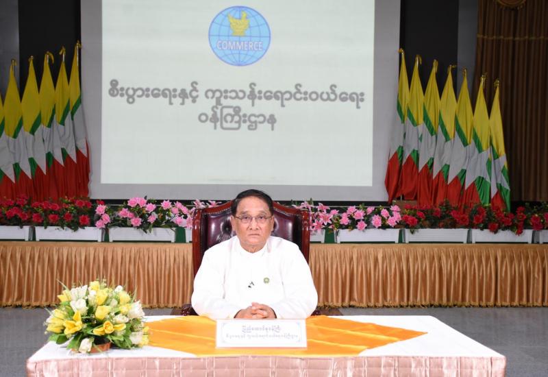 World Pulses Day 2021 အခမ်းအနားနှင့် မြန်မာနိုင်ငံဒီဂျစ်တယ် စီးပွားရေးဆိုင်ရာ လုပ်ငန်းရှင်များအသင်း ပထမအကြိမ်မြောက် နှစ်ပတ်လည် အသင်းသား စုံညီအစည်းအဝေးတို့ကို ယနေ့ကျင်းပရာ စီးပွားရေးနှင့် ကူးသန်းရောင်းဝယ်ရေးဝန်ကြီးဌာန ပြည်ထောင်စုဝန်ကြီး ဒေါက်တာသန်းမြင့် Video Message ပေးပို့၍ အမှာစကားပြောကြားသည်။