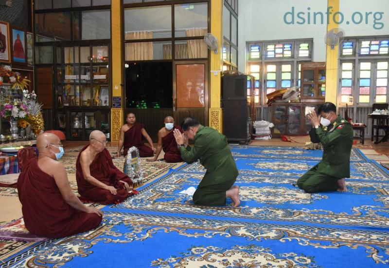 တပ်မတော်ကာကွယ်ရေးဦးစီးချုပ် ဗိုလ်ချုပ်မှူးကြီးမင်းအောင်လှိုင်သည် ယနေ့ ညနေပိုင်းတွင် ကာကွယ်ရေး ဝန်ကြီးဌာန ပြည်ထောင်စုဝန်ကြီး ဗိုလ်ချုပ်ကြီး မြထွန်းဦး နှင့် နေပြည်တော် တိုင်းစစ် ဌာနချုပ် တိုင်းမှူး ဗိုလ်ချုပ် ဇော်မျိုးတင် တို့လိုက်ပါ၍ နေပြည်တော်ကောင်စီနယ်မြေ၊ ပျဉ်းမနားမြို့၊ ဈေးကုန်းကျောင်းတိုက် ပဓာနနာယက ဆရာတော် အဘိဓဇမဟာရဋ္ဌဂုရု ဘဒ္ဒန္တ ကဝိသာရ အား သွားရောက်ဖူးမြော် ကြည်ညိုသည်။