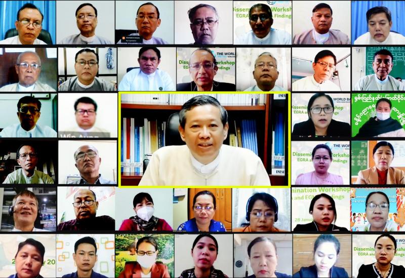 မူလတန်းအောက်ဆင့် သင်္ချာစွမ်းရည်နှင့် စာဖတ်စွမ်းရည်စစ်ဆေးအကဲဖြတ်ခြင်း (Early Grade Mathematics Assessment and Reading Assessment – EGRA/EGMA) သုတေသန လုပ်ငန်း၏ တွေ့ရှိချက်များနှင့် ဆက်လက်ဆောင်ရွက်မည့် လုပ်ငန်းစဉ်များ တင်ပြခြင်းလုပ်ငန်း ဆွေးနွေးပွဲအခမ်းအနားကို ယနေ့နံနက် ၉ နာရီတွင် ဗီဒီယိုကွန်ဖရင့် စနစ်ဖြင့် ကျင်းပသည်။