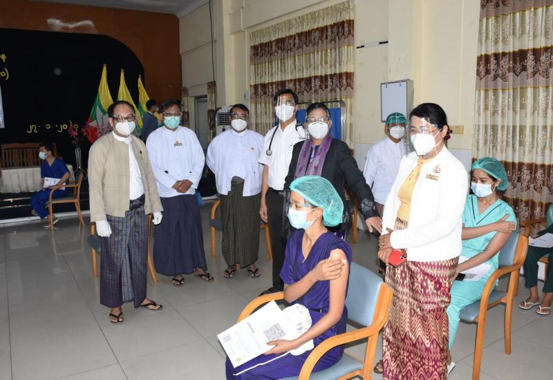 နိုင်ငံတစ်ဝန်းရှိ တိုင်းဒေသကြီး/ ပြည်နယ်အသီးသီးမှ ကျန်းမာရေးဝန်ထမ်းများကို ယနေ့နံနက် (၈) နာရီမှ စတင်၍ ကိုဗစ်-၁၉ ကာကွယ်ဆေးများ စတင်ထိုးနှံပေးလျက်ရှိသည်။