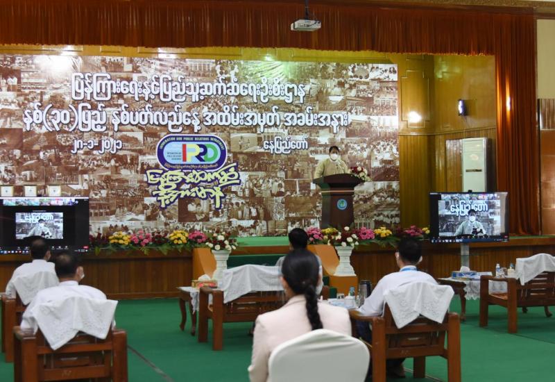 ပြန်ကြားရေးဝန်ကြီးဌာန ပြန်ကြားရေးနှင့် ပြည်သူ့ဆက်ဆံရေးဦးစီးဌာန၏ နှစ်(၃၀)ပြည့် နှစ်ပတ်လည်နေ့ အထိမ်းအမှတ်အခမ်းအနားကို ယနေ့နံနက် ၁၀ နာရီတွင် ဝန်ကြီးရုံး စုပေါင်းအစည်းအဝေးခန်းမ၌ ကျင်းပသည်။