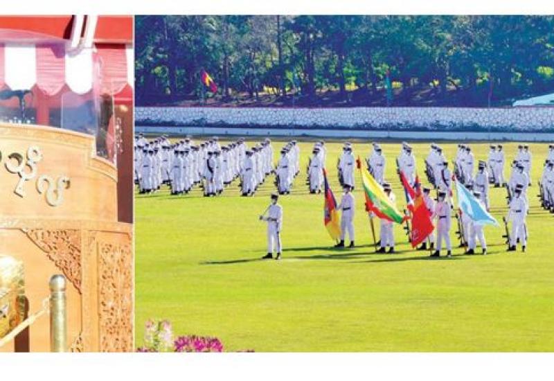စစ်တက္ကသိုလ် ဗိုလ်လောင်းသင်တန်းအမှတ်စဉ် (၆၂) သင်တန်းဆင်းဂုဏ်ပြု စစ်ရေးပြ အခမ်းအနားကို ယနေ့နံနက်ပိုင်းတွင် ပြင်ဦးလွင်မြို့ စစ်တက္ကသိုလ် စစ်ရေးပြကွင်း၌ ကျင်းပရာ တပ်မတော်ကာကွယ်ရေးဦးစီးချုပ် ဗိုလ်ချုပ်မှူးကြီး မဟာသရေစည်သူ မင်းအောင်လှိုင် တက်ရောက် မိန့်ခွန်းပြောကြားသည်။