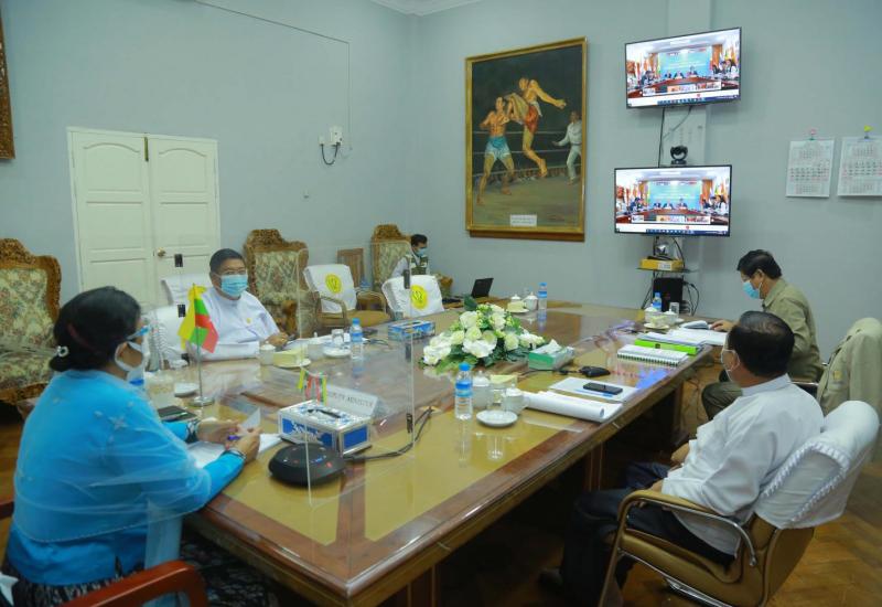 e-Government အကောင်အထည်ဖော်ရေးလုပ်ငန်းကော်မတီ၏ ပဉ္စမအကြိမ် လုပ်ငန်းညှိနှိုင်းအစည်းအဝေးကို ယနေ့ မွန်းလွဲ ၂ နာရီတွင် Video Conferencing စနစ်ဖြင့် ကျင်းပသည်။