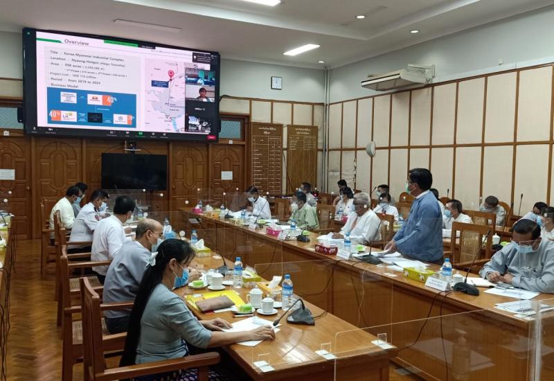 ဒေသအတွင်း ယှဉ်ပြိုင်နိုင်စွမ်းရှိသည့် နိုင်ငံတကာအဆင့်မီ စက်မှုမြို့တစ်ခု ဖြစ်လာစေ ရေးအတွက် ရင်းနှီးမြှုပ်နှံသူများ၏ လုပ်ငန်းများချောမွေ့စွာ လည်ပတ်စေနိုင်ရန်နှင့် ကောင်း မွန်သော အခြေခံ အဆောက်အအုံ ပြည့်စုံသော Facilitation Service ဝန်ဆောင်မှုများဖြင့် ထိရောက်မြန်ဆန်စွာ ဆောင်ရွက်ပေးနိုင်ရန် Korea – Myanmar Industrial Complex (KMIC) ကိုရီးယား- မြန်မာ စက်မှုဇုန်ထူထောင်ရေး ဦးဆောင်ညှိနှိုင်းမှုကော်မတီ (ပထမအကြိမ်) အစည်းအဝေး ကို ယနေ့နံနက် ၁၀ နာရီတွင် ဗီဒီယိုကွန်ဖရင့် စနစ်ဖြင့် ကျင်းပ သည်။
