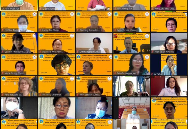 လူမှုဝန်ထမ်း၊ ကယ်ဆယ်ရေးနှင့် ပြန်လည်နေရာချထားရေးဝန်ကြီးဌာနမှ ဦးဆောင်၍ အာဆီယံ ဒေသဆိုင်ရာအမျိုးသမီးများ အပေါ် အကြမ်းဖက်မှုပပျောက်ရေး လုပ်ငန်းစီမံချက်အပေါ် ကာလလတ်ပြန် လည်သုံးသပ်သည့် နိုင်ငံအဆင့်ဆွေးနွေးပွဲကို အောက်တိုဘာ ၂၂ ရက်တွင် Online စနစ်ဖြင့် ကျင်းပသည်။
