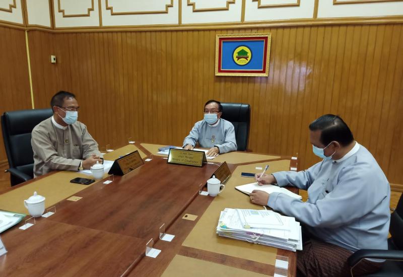 ပဲခူးတိုင်းဒေသကြီးအစိုးရအဖွဲ့ရုံး၊ အစည်းအဝေးခန်းမ၌ ယမန်နေ့ မွန်းလွဲ ၃ နာရီခွဲက ကိုဗစ်-၁၉ ထိန်းချုပ်ရေးနှင့် အရေးပေါ်တုံ့ပြန်ရေးကော်မတီ အစည်းအဝေးအား