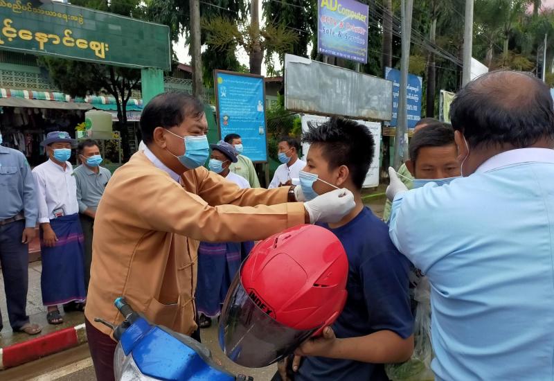 ကရင်ပြည်နယ်၊ မြဝတီမြို့တွင် ကိုဗစ် - ၁၉ ရောဂါ ဒုတိယလှိုင်းကြိုတင်ကာကွယ်ရေး၊ ပြည်သူများ ရောဂါပြန့်ပွားမှုမရှိစေရေးအတွက် နှာခေါင်းစည်းများ အခမဲ့ဖြန့်ဝေခြင်းကို ယမန်နေ့နံနက်ပိုင်းက မြဝတီမြို့ဘုရင့်နောင်ဈေးရှေ့၌ ဆောင်ရွက်ခဲ့သည်။