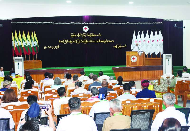 မြန်မာနိုင်ငံ ကြက်ခြေနီအသင်း (၈၈) ကြိမ်မြောက် ကြက်ခြေနီဗဟိုကောင်စီအစည်းအဝေးကို ယနေ့နံနက်ပိုင်းက နေပြည်တော်ရှိ မြန်မာနိုင်ငံကြက်ခြေနီအသင်းဌာနချုပ်၌ ကျင်းပသည်။