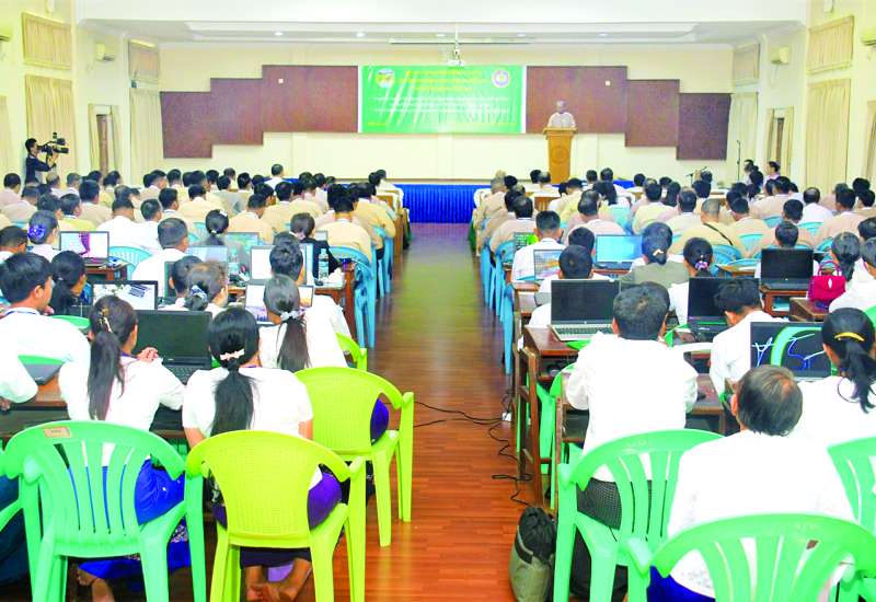 စာချုပ်စာတမ်းများ မှတ်ပုံတင်ဥပဒေနှင့် လယ်ယာမြေဥပဒေတို့အရ စာချုပ်စာတမ်းမှတ်ပုံတင်ခြင်းလုပ်ငန်းများ ဆောင်ရွက်၍ ဒစ်ဂျစ်တယ်နည်းလမ်းဖြင့် မှတ်တမ်းတင်ရန် အသုံးပြုလျက်ရှိသည့် FDM & DDMS Software များအား Upgrade and Technical Support လုပ်ငန်းဆိုင်ရာ အလုပ်ရုံဆွေးနွေးပွဲကို ယနေ့နံနက်ပိုင်းက ရန်ကုန်မြို့ ရန်ကင်းမြို့နယ် ဆည်မြောင်းနှင့် ရေအသုံးချမှုစီမံခန့်ခွဲရေးဦးစီးဌာန အစည်းအဝေးခန်းမ၌ ကျင်းပသည်။