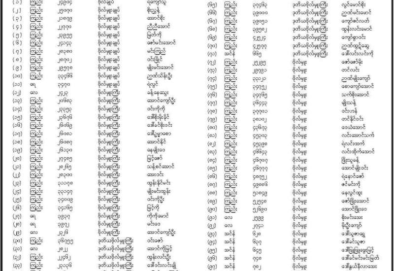 တပ်မတော်သားပြည်သူ့လွှတ်တော်ကိုယ်စားလှယ် အမည်စာရင်းထုတ်ပြန်ကြေညာ
