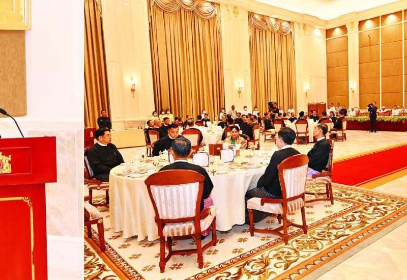 ပြည်ထောင်စုသမ္မတမြန်မာနိုင်ငံတော် ယာယီသမ္မတ နိုင်ငံတော်လုံခြုံရေးနှင့်အေးချမ်းသာယာရေးကော်မရှင်ဥက္ကဋ္ဌ ဗိုလ်ချုပ်မှူးကြီး မင်းအောင်လှိုင်က အပြည်ပြည်ဆိုင်ရာတရားရုံး (ICJ) ၌ တရားရင်ဆိုင်ကြားနာပွဲသို့ သွားရောက်ဖြေရှင်းခဲ့သည့် မြန်မာကိုယ်စားလှယ်အဖွဲ့အား ဂုဏ်ပြုညစာစားပွဲဖြင့် တည်ခင်းဧည့်ခံပွဲကို ယနေ့ညနေပိုင်းတွင် အမျိုးသားကာကွယ်ရေးနှင့် လုံခြုံရေးကောင်စီရုံး Banquet Hall ၌ ကျင်းပပြုလုပ်သည်။