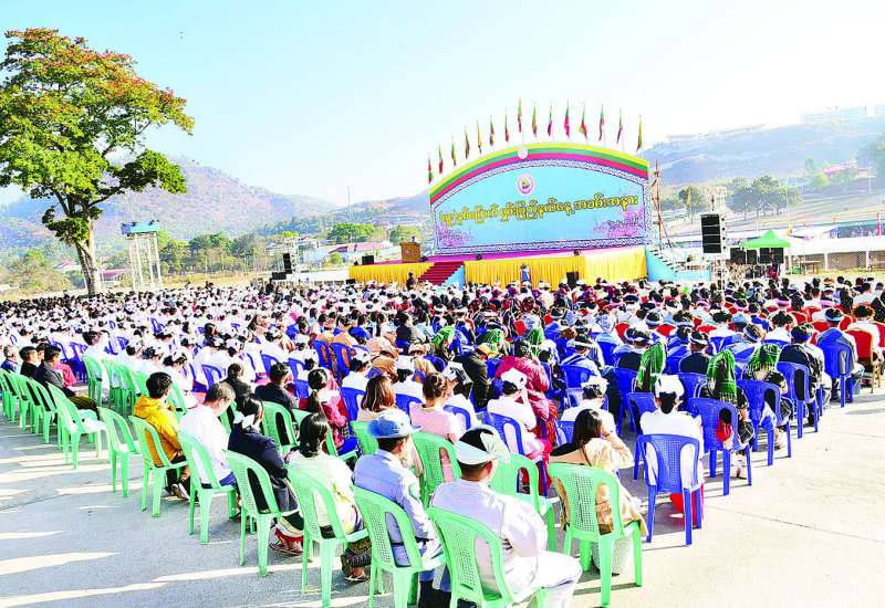 (၇၉) နှစ်မြောက် ရှမ်းပြည်နယ်နေ့အခမ်းအနားကို ယနေ့နံနက် ၈ နာရီက တောင်ကြီးမြို့ အဝေရာမီးပုံးပျံကွင်း၌ ကျင်းပရာ နိုင်ငံတော်လုံခြုံရေးနှင့် အေးချမ်းသာယာရေးကော်မရှင်အဖွဲ့ဝင် နယ်စပ်ရေးရာဝန်ကြီးဌာနနှင့် တိုင်းရင်းသားလူမျိုးများရေးရာဝန်ကြီးဌာန ပြည်ထောင်စုဝန်ကြီး ဒုတိယဗိုလ်ချုပ်ကြီး ရာပြည့်၊ သာသနာရေးနှင့်ယဉ်ကျေးမှုဝန်ကြီးဌာန ပြည်ထောင်စုဝန်ကြီး ဦးတင်ဦးလွင်၊ စိုက်ပျိုးရေး၊ မွေးမြူရေးနှင့်ဆည်မြောင်းဝန်ကြီးဌာန ပြည်ထောင်စုဝန်ကြီး ဦးမင်းနောင်၊ သိပ္ပံနှင့် နည်းပညာဝန်ကြီးဌာန ပြည်ထောင်စုဝန်ကြီး ဒေါက်တာမျိုးသိန်းကျော်၊ လူမှုဝန်ထမ်း၊ ကယ်ဆယ်ရေးနှင့် ပြန်လည်နေရာချထားရေးဝန်ကြီးဌာန ပြည်ထောင်စုဝန်ကြီး ဒေါက်တာစိုးဝင်း၊ ရှမ်းပြည်နယ်ဝန်ကြီးချုပ် ဦးအောင်အောင်၊ အရှေ့ပိုင်းတိုင်းစစ်ဌာနချုပ် တိုင်းမှူး၊ ပြည်နယ်တရားလွှတ်တော် တရားသူကြီးချုပ်၊ ပြည်နယ်ဝန်ကြီးများ၊ ပြည်နယ်ဥပဒေချုပ်၊ ရှမ်းပြည်နယ်အစိုးရအဖွဲ့အတွင်းရေးမှူး၊ ပြည်နယ်၊ ခရိုင်၊ မြို့နယ်အဆင့် ဌာနဆိုင်ရာများ၊ လူမှုရေးအသင်းအဖွဲ့များ၊ တိုင်းရင်းသားစာပေယဉ်ကျေးမှုအဖွဲ့များ၊ ရပ်ကွက်အုပ်ချုပ်ရေးမှူးများ၊ ဒေသခံပြည်သူများ၊ တာဝန်ရှိသူများ တက်ရောက်ကြသည်။