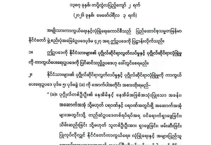 နိုင်ငံသားများ၏ ပုဂ္ဂိုလ်ဆိုင်ရာလွတ်လပ်မှုနှင့် ပုဂ္ဂိုလ်ဆိုင်ရာလုံခြုံမှုကို ကာကွယ်ပေးရေးဥပဒေကို ပြင်ဆင်သည့်ဥပဒေ