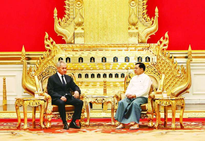 ပြည်ထောင်စုသမ္မတမြန်မာနိုင်ငံတော် ယာယီသမ္မတ နိုင်ငံတော်လုံခြုံရေးနှင့်အေးချမ်းသာယာရေးကော်မရှင်ဥက္ကဋ္ဌ ဗိုလ်ချုပ်မှူးကြီး မင်းအောင်လှိုင်သည် ရုရှားဖက်ဒရေးရှင်းနိုင်ငံ လုံခြုံရေးကောင်စီအတွင်းရေးမှူး H.E.Mr. Sergey SHOIGU ဦးဆောင်သည့် ကိုယ်စားလှယ်အဖွဲ့အား ယနေ့နံနက်ပိုင်းတွင် အမျိုးသားကာကွယ်ရေးနှင့် လုံခြုံရေးကောင်စီရုံး သံတမန်ဆောင်ဧည့်ခန်းမ၌ လက်ခံတွေ့ဆုံသည်။