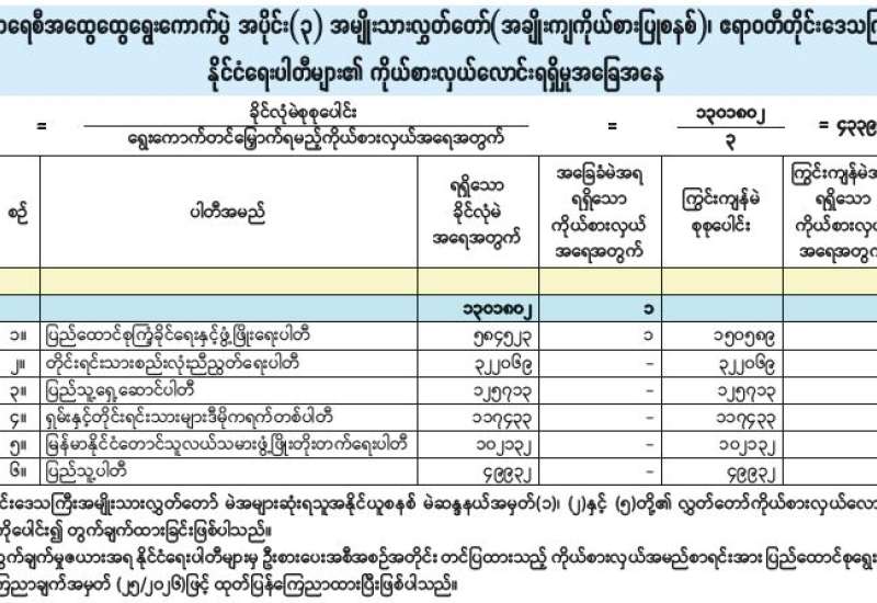 အမျိုးသားလွှတ်တော် (အချိုးကျကိုယ်စားပြုစနစ်)၊ ရှမ်းပြည်နယ်မဲဆန္ဒနယ်အမှတ် (၂) နိုင်ငံရေးပါတီများ၏ ကိုယ်စားလှယ်လောင်းရရှိမှုအခြေအနေ