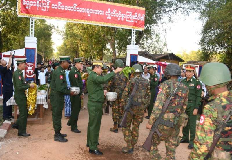 PDF ပြည်သူများအား နှိပ်စက်ညှင်းပန်း၍ ဒေသဖွံ့ဖြိုးတိုးတက်မှုကို ချွတ်ခြုံကျစေသည့် အကြမ်းဖက်လုပ်ရပ်များကို လုပ်ဆောင်ခဲ့သော ရှမ်းပြည်နယ် (မြောက်ပိုင်း)၊ ကျောက်မဲဒေသနှင့် နောင်ချိုမြို့နယ်၊ မန္တလေးတိုင်းဒေသကြီး ဝမ်းတွင်းမြို့နယ်နှင့် မလှိုင်မြို့နယ် ဒေသတစ်ဝိုက်ရှိ လက်နက်ကိုင်အကြမ်းဖက်အဖွဲ့များနှင့် အမည်ခံအကြမ်းဖက်အဖွဲ့များအား ရွပ်ရွပ်ချွံချွံတိုက်ပွဲဝင်၍ အောင်ပွဲအလီလီရယူနိုင်ခဲ့သော ရှေ့တန်းပြန်နိုင်ငံ့သားကောင်း တပ်မတော်သားများအား ဂုဏ်ပြုကြိုဆိုခြင်းကို ယနေ့ညနေပိုင်းတွင် ရန်ကုန်တိုင်းဒေသကြီး၊ တိုက်ကြီးမြို့နယ်ရှိ နယ်မြေခံတပ်ရင်း၌ ပြုလုပ်ရာ ရန်ကုန်တိုင်းစစ်ဌာနချုပ် တိုင်းမှူး ဗိုလ်ချုပ် ပြည့်စုံလင်းနှင့် ဌာနဆိုင်ရာ တာဝန်ရှိသူများ၊ ကျောင်းသား/ကျောင်းသူများ၊ အနုပညာရှင်များနှင့် ဒေသခံပြည်သူများ တက်ရောက်ကြသည်။