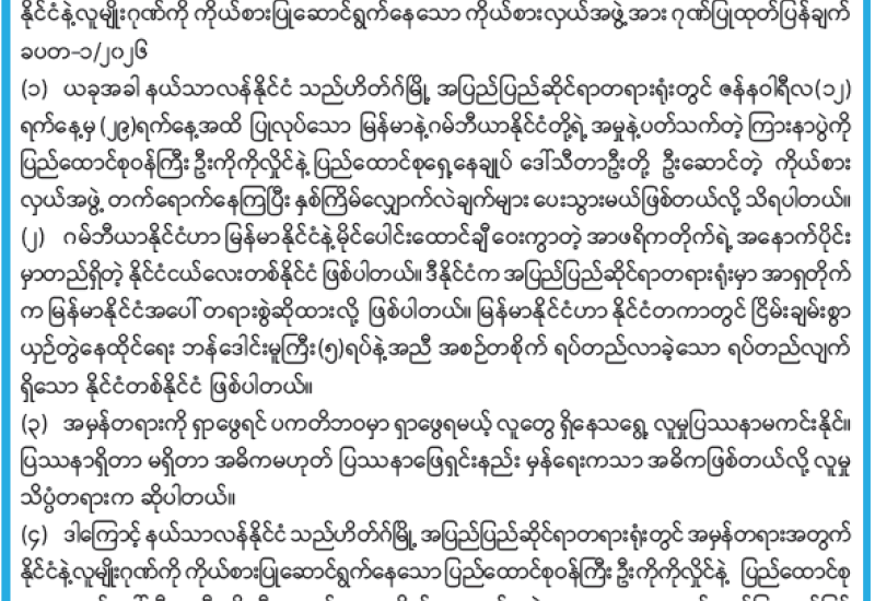 မြန်မာနိုင်ငံအစိုးရအနေဖြင့် နိုင်ငံတကာနှင့် တစ်ကမ္ဘာလုံးကိုအန္တရာယ်ပေးနေသည့် online လိမ်လည်မှုများ၊ online လောင်းကစားမှုများတိုက်ဖျက်ရေးလုပ်ငန်းစဉ်များကို အမျိုးသားရေးတာဝန်တစ်ရပ်အနေဖြင့် အလေးထားတိုက်ဖျက်ဆောင်ရွက်လျက်ရှိပြီး Online Scam Center လုပ်ငန်းများတွင် ပါဝင်ပတ်သက်နေသူများနှင့် နောက်ကွယ်မှ ကြိုးကိုင်သော နိုင်ငံခြားသားများကို ဖော်ထုတ်ဖမ်းဆီးပြီး ထိထိရောက်ရောက် ပြင်းပြင်းထန်ထန်အရေးယူနိုင်ရေး အိမ်နီးချင်းနှင့် ဒေသတွင်းနိုင်ငံများ၊ နိုင်ငံတကာ အဖွဲ့အစည်းများနှင့် တက်ကြွစွာ ပူးပေါင်းဆောင်ရွက်လျက်ရှိသည့်အပြင် အကြောင်းအမျိုးမျိုးကြောင့် မြန်မာနိုင်ငံအတွင်းသို့ ရောက်ရှိနေသည့် နိုင်ငံခြားသားများကိုလည်း လူသားချင်းစာနာထောက်ထားမှုနှင့် နိုင်ငံအချင်းချင်း ချစ်ကြည်ရင်းနှီးမှုတို့ကို ရှေးရှု၍ တရားဥပဒေနှင့်အညီ စစ်ဆေးကာ ပါဝင်ပတ်သက်သူများကို သက်ဆိုင်ရာနိုင်ငံများသို့ ပြန်လည်လွှဲပြောင်းပေးအပ်သည့်အပြင် အဓိကပြစ်မှုကျူးလွန်ခဲ့သူများကိုလည်း ဖမ်းဆီးထိန်းသိမ်းပြီး သက်ဆိုင်ရာအစိုးရအဖွဲ့ထံ တရားဝင်လွှဲပြောင်းပေးခြင်းများ ဆောင်ရွက်လျက်ရှိသည်။