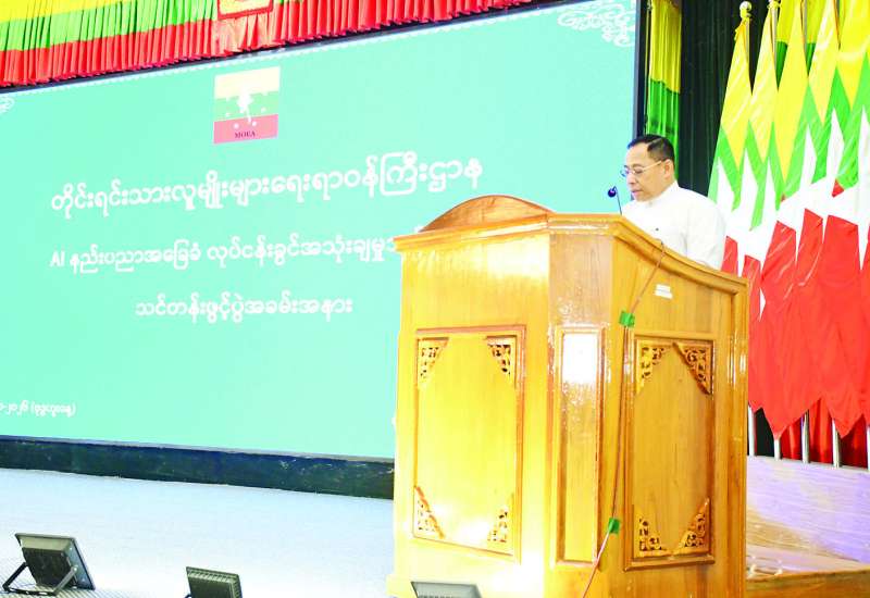 တိုင်းရင်းသားလူမျိုးများရေးရာဝန်ကြီးဌာန AI နည်းပညာ အခြေခံလုပ်ငန်းခွင်အသုံးချမှု သင်တန်းဖွင့်ပွဲကို ယနေ့နံနက်ပိုင်းတွင် တိုင်းရင်းသားလူမျိုးများရေးရာဝန်ကြီးဌာန ပြည်ထောင်စုဝန်ကြီးရုံး အစည်းအဝေးခန်းမ၌ ကျင်းပသည်။