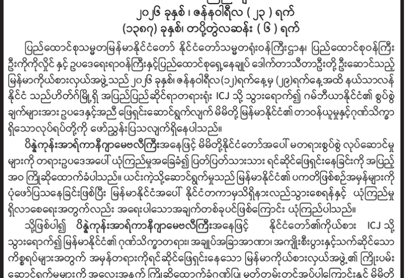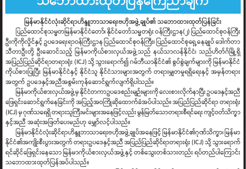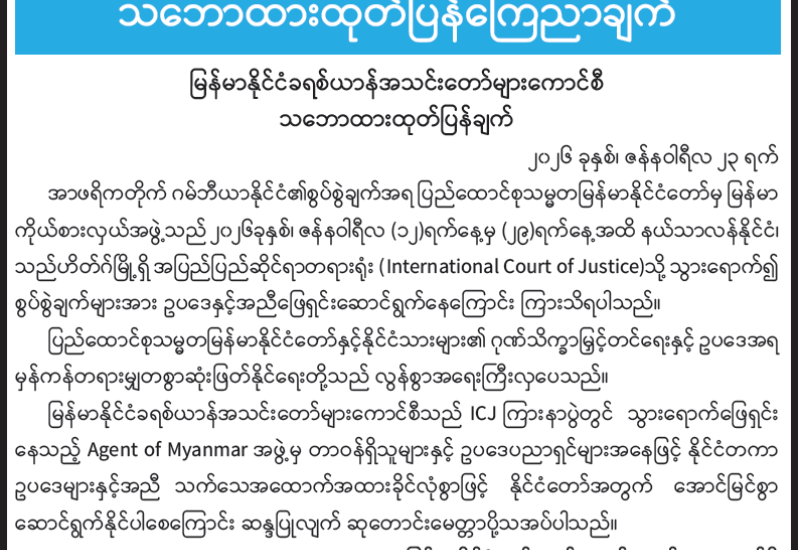 မြန်မာနိုင်ငံခရစ်ယာန်အသင်းတော်များကောင်စီ သဘောထားထုတ်ပြန်ချက်