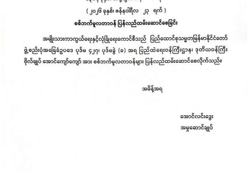 ရန်ကုန်မြို့နှင့် မန္တလေးမြို့အတွက် ရည်ညွှန်းလက်ကားဈေးနှုန်းများနှင့် ပြည်ထောင်စုနယ်မြေ နေပြည်တော်၊ တိုင်းဒေသကြီး/ပြည်နယ် မြို့တော်များအတွက် ရည်ညွှန်းလက်လီဈေးနှုန်းများ